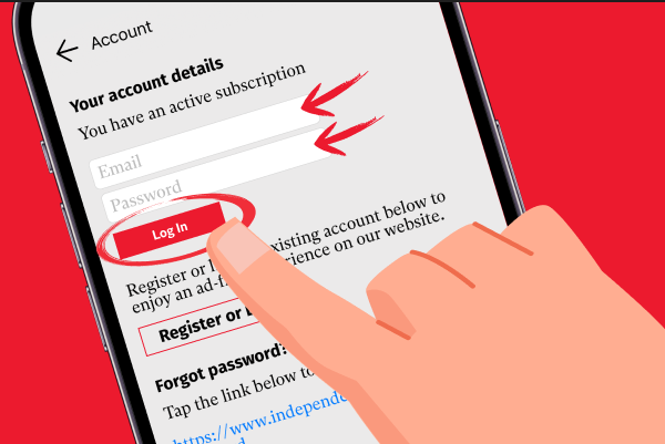 If you have forgotten your password, please use this link to reset your password www.independent.co.uk/forgotten-password